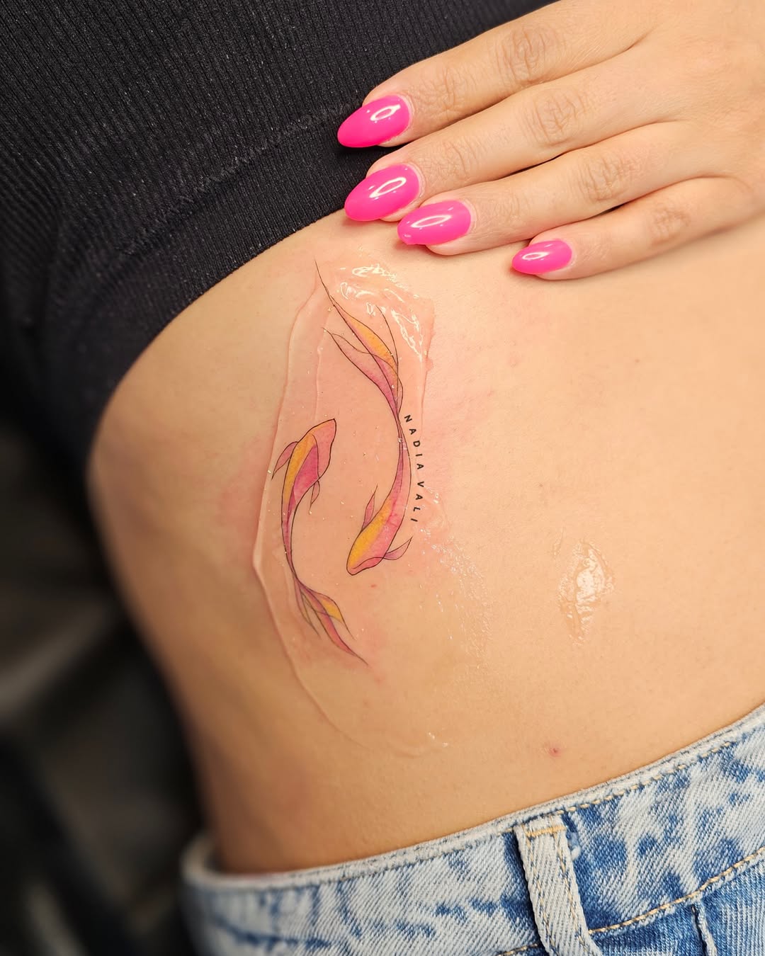 مکان مناسب برای خالکوبی دو ماهی صورتی و زرد