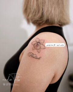 یکی از ترکیب های محبوب برای تقویت مفهوم رشد، اضافه کردن نوشته کوتاه کنار نیلوفر است. مثلا یک کلمه مثل “رشد”، “آرامش”، “قوی تر”، “شروع دوباره”، یا حتی یک تاریخ خاص. بعضی ها یک جمله کوتاه انگلیسی مثل “Bloom” یا “Rise” را انتخاب می کنند. ولی خیلی ها هم دوست دارند فارسی باشد چون حس شخصی تری دارد. البته باید توجه کرد اگر قرار است نوشته به طرح اضافه شود، فونت و محل قرارگیری باید خیلی درست انتخاب شود تا هم خوانا بماند و هم زیبایی گل را خراب نکند.