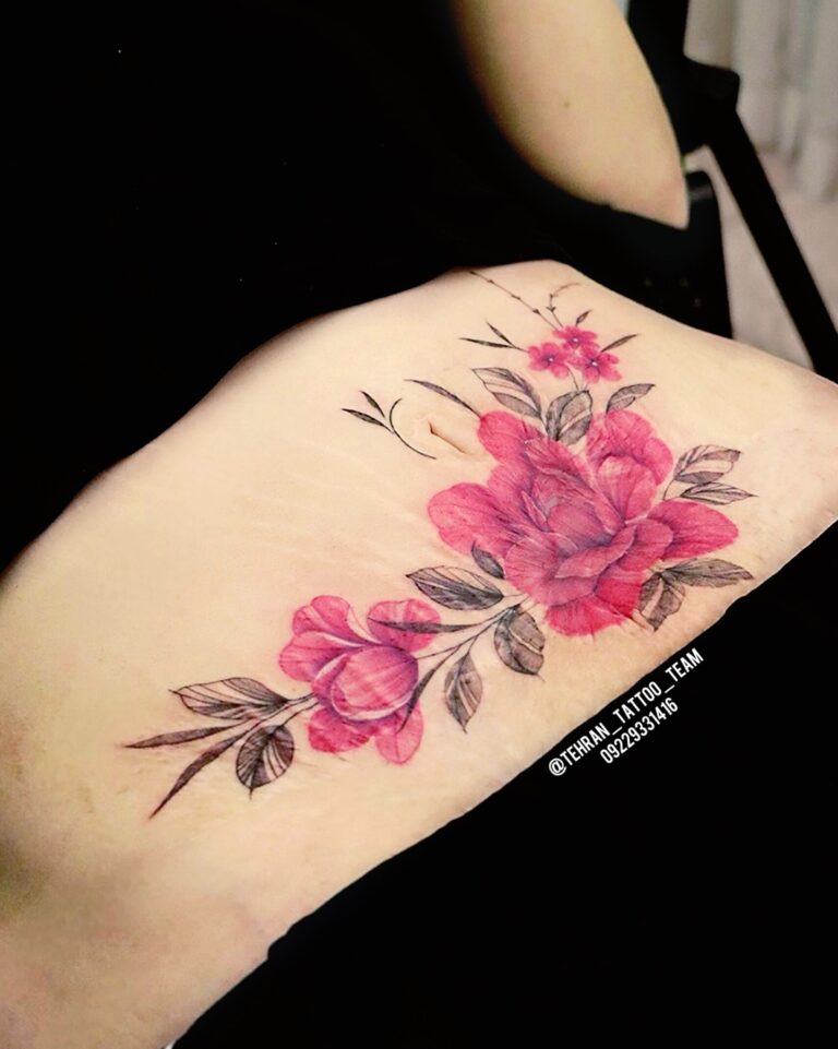 تتو گل رز صورتی روی زخم شکم